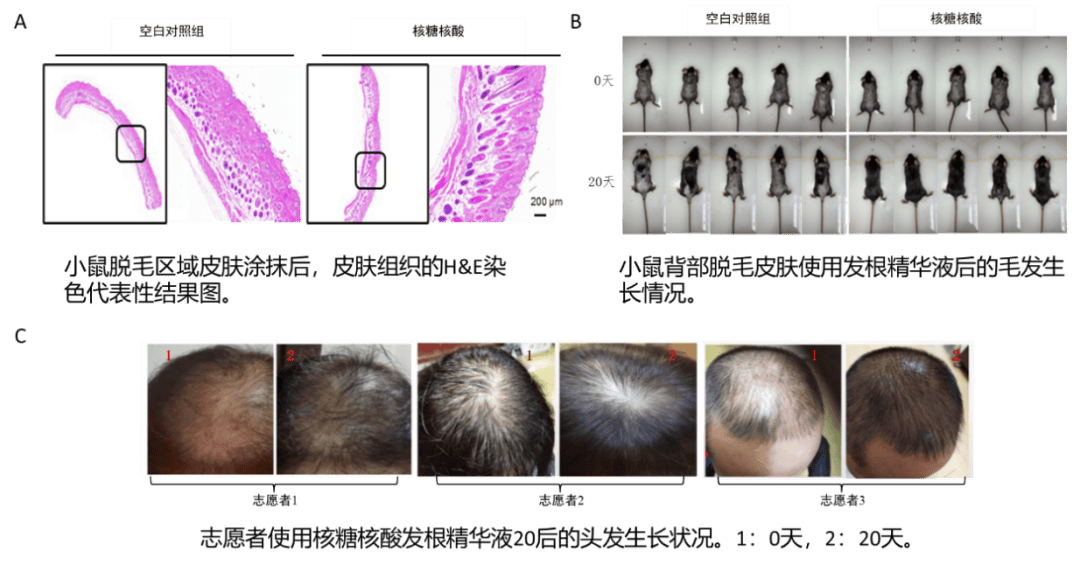 在防脱发领域,防脱原料miRITA-218已完成动物实验和志愿者测试,结果表明,核糖核酸通过激活毛囊活性促进毛发生长,效果显著。