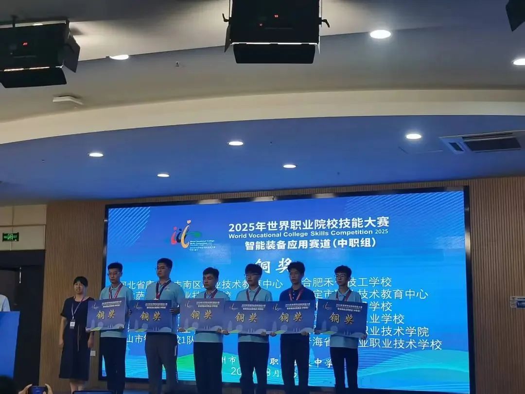 在杭州市富阳职业高级中学举办的“智能装备应用”赛道比赛中,由任雨洁、张安邦、周硕三位同学组成的参赛团队与来自全国各地中职院校的109支优秀队伍同场竞技。面对强劲对手,同学们凭借扎实的专业基础、默契的团队配合和稳定的临场发挥,经过激烈角逐,荣获大赛铜奖。