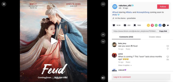 欢娱影视近年来积极开展国际化战略布局,加大与 HBO、FOX、YouTube、Netflix、Disney+等40余家国际知名媒体集团、有线电视、OTT 平台、流媒体渠道合作,令古典文化和东方美学以优质国剧为载体蜚声海外。《临江仙》将为全球观众带来一场恨爽交织的创意美学飨宴,不仅登上Netflix首页推荐位,还引海外网友翘首以盼,北美VIKI官宣《临江仙》即将上线的消息在Tiktok点赞破万,TrueID更将上线泰语配音和字幕版,尽显中国传统文化和优质内容的魅力。