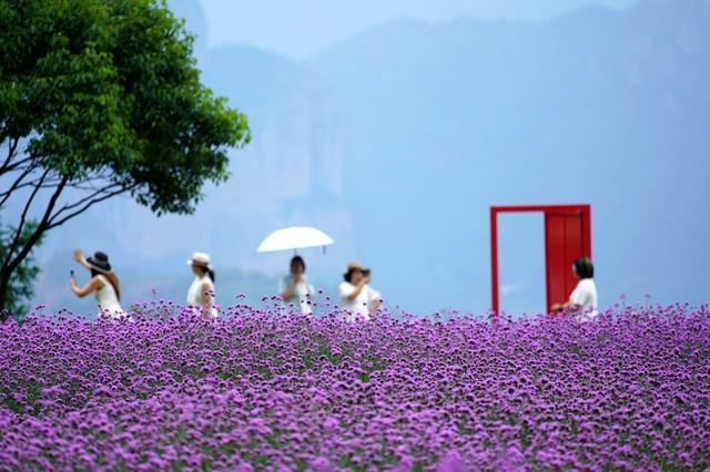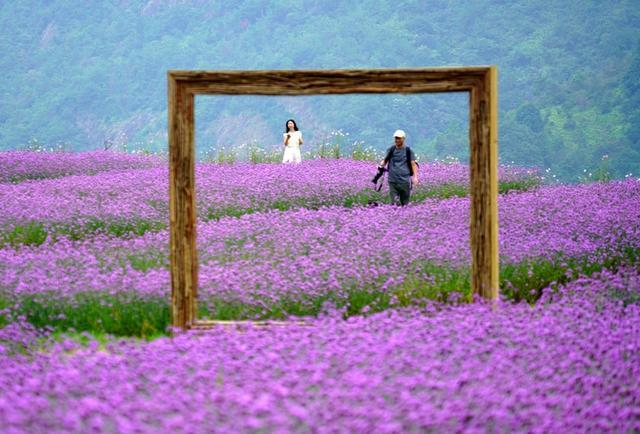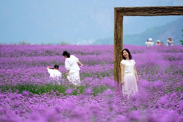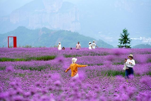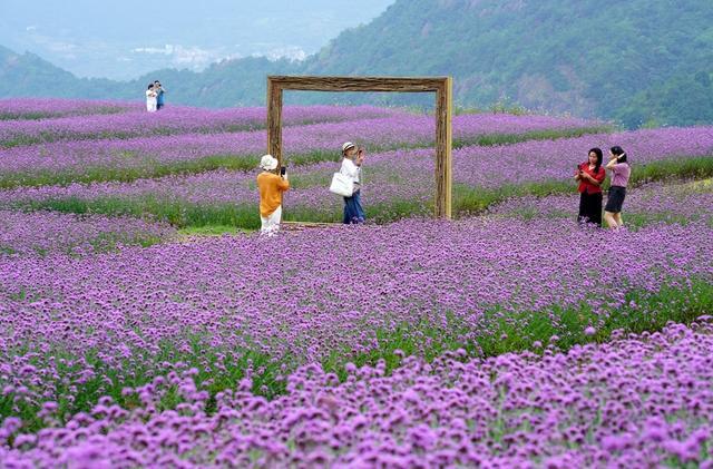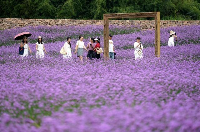 初秋时节,在浙江乐清的狮子峰景区,成片的马鞭草绚烂绽放,迎来最佳观赏期,这片紫色的花海吸引了众多游客前来赏花游玩,乐享秋日好时光。(未经授权,请勿转载)