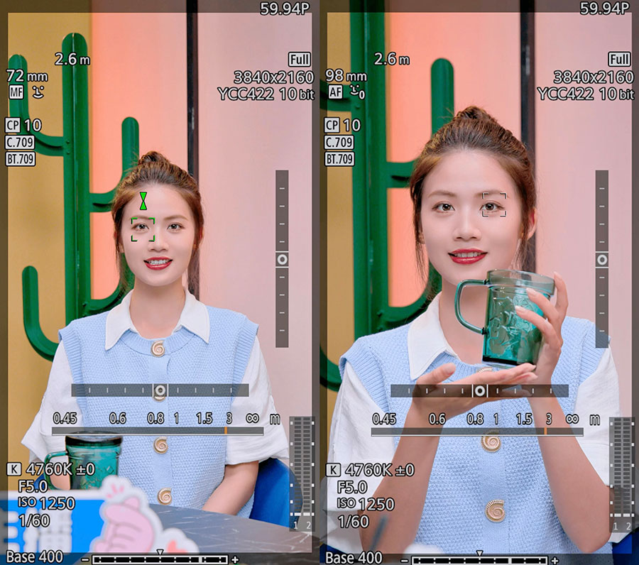 “佳直播”为爱奇艺打造的4K超高清直播解决方案采用两台佳能EOS R5 C电影摄影机作为主、副机位。主机位搭配RF15-35mm F2.8 L IS USM镜头拍摄全景,其广角端比常规广角变焦镜头更广,即使在29平米的空间里,也能呈现高清锐利的大场景画面。特写机位搭配RF24-105mm F4 L IS USM镜头,焦段范围宽广,兼容性高,特别适用于人物中近景和产品特写,对焦速度与精度表现都非常出色。